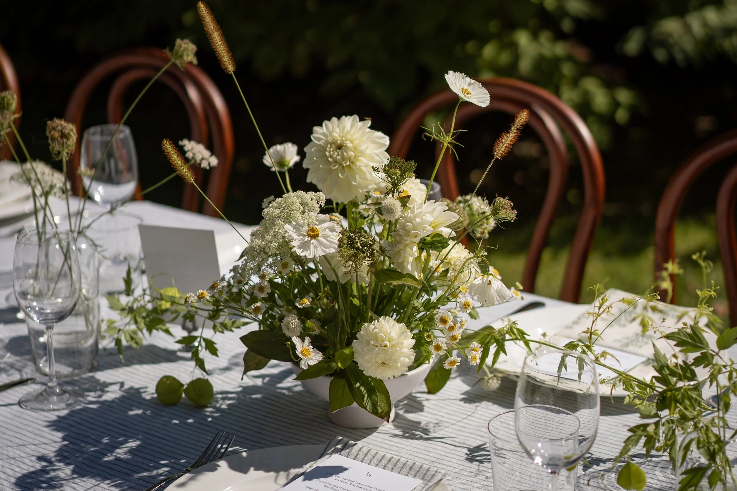 Summer in the Hudson Valley is a season of abundance—lush gardens, golden sunlight, and the perfect setting for meaningful gatherings. We had the pleasure of creating florals for a special event at Troutbeck, a historic estate known for its refined yet relaxed atmosphere. This summer lunch was more than just a meal; it was a celebration of craftsmanship, creativity, and connection, marking the launch of Endswell Home’s new linen collection.